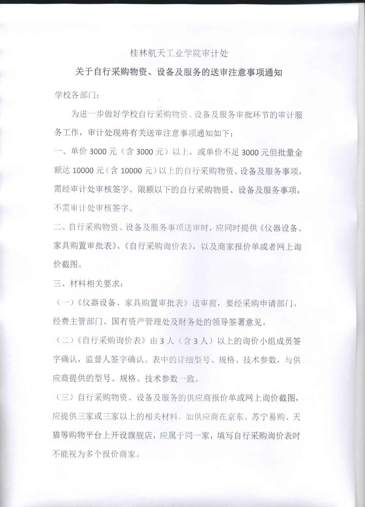 桂林航天工业学院PA视讯平台关于自行采购物资、设备及服务的送审注意事项通知